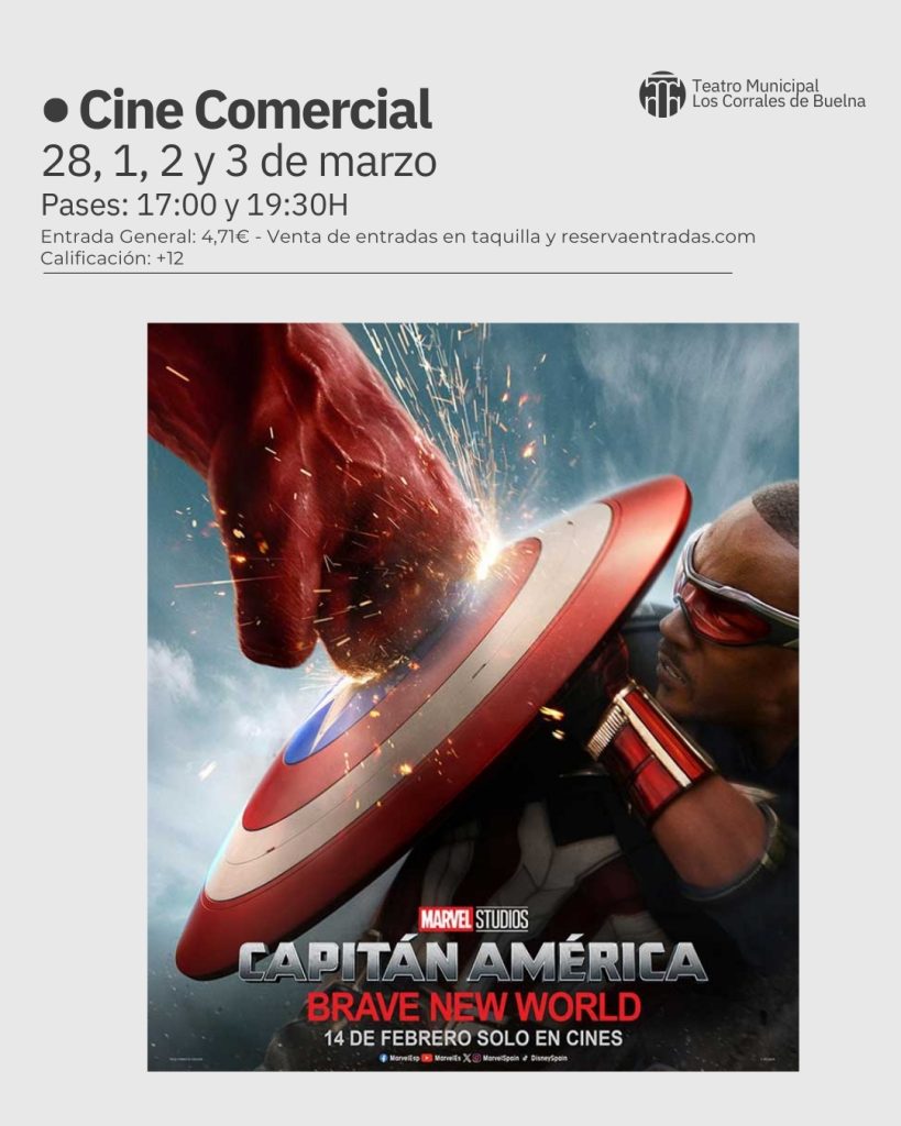 No te pierdas este finde semana la proyección de la película española ‘Capitán América: Brave new world’, en el Teatro Municipal de Los Corrales de Buelna. Días: 28 de febrero, 1, 2 y 3 de marzo. Hora: 17:00 y 19:30 h. Lugar: Teatro Municipal de Los Corrales de Buelna. Entrada general: 4,71€ venta de entradas en taquilla y en reservaentradas.com […]
