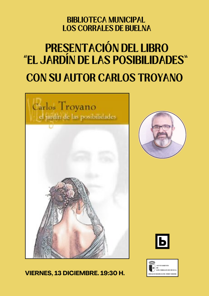 La concejalía de Educación, Cultura, Ciudadanía y Turismo del Ayuntamiento, junto a la Biblioteca Municipal de Los Corrales de Buelna, organizan una serie de actividades en diciembre. Presentación de libro `El jardín de las posibilidades´ con su autor Carlos Troyano Fecha: viernes 13 de diciembre Hora: 19:30 h ¡Te esperamos!