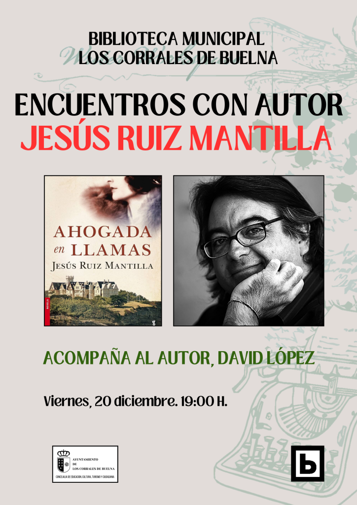 La concejalía de Educación, Cultura, Ciudadanía y Turismo del Ayuntamiento, junto a la Biblioteca Municipal de Los Corrales de Buelna, organizan una serie de actividades en diciembre. Encuentros con autor. Jesús Ruiz Mantilla Acompaña al autor, David López Fecha: viernes 20 de diciembre Hora: 19:00 h ¡Te esperamos!