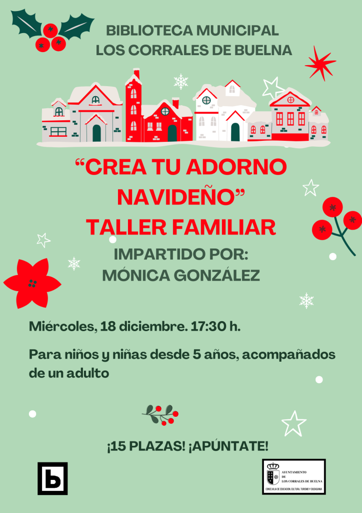 La concejalía de Educación, Cultura, Ciudadanía y Turismo del Ayuntamiento, junto a la Biblioteca Municipal de Los Corrales de Buelna, organizan una serie de actividades en diciembre. Crea tu adorno navideño Taller familiar impartido por Mónica González. Para niños desde 5 años acompañados de un adulto. 15 plazas. Fecha: miércoles 18 de diciembre Hora: 17:30 […]