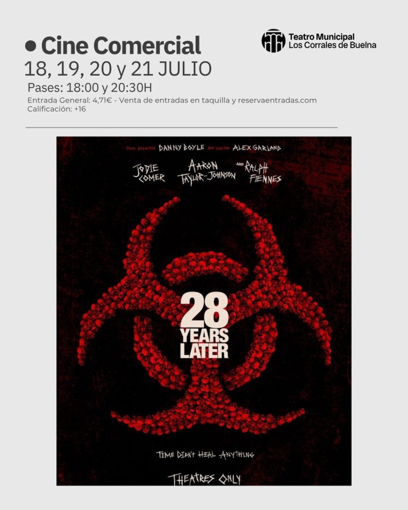 No te pierdas la proyección de una de las películas más esperadas del año ‘28 años después’, en el Teatro Municipal de Los Corrales de Buelna. Días: 18, 19, 20 y 21 de julio. Hora: a las 18:00 y a las 20:30. Lugar: Teatro Municipal de Los Corrales de Buelna. Entrada general: 4,71€ venta de entradas en taquilla […]