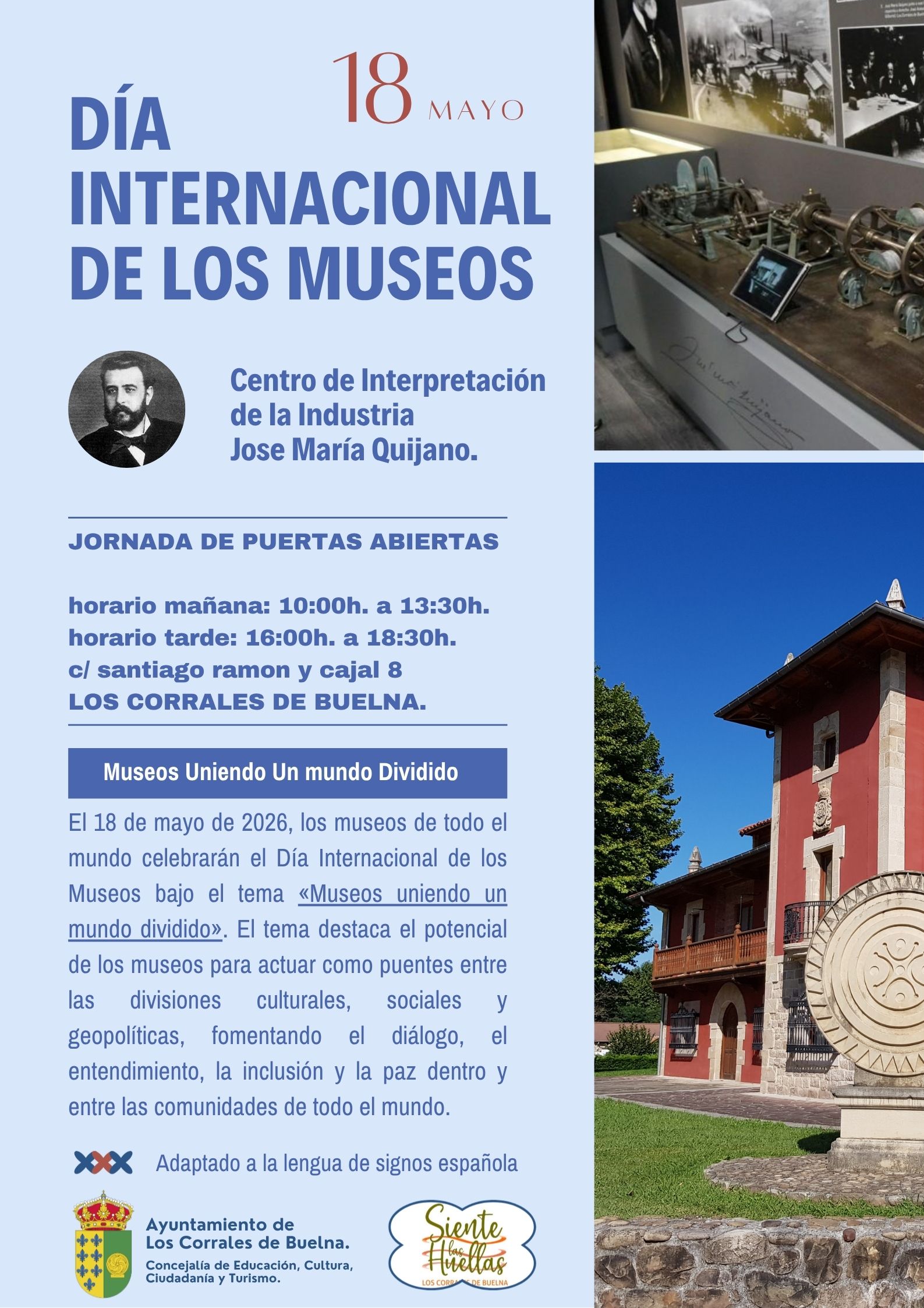 El municipio de Los Corrales de Buelna se suma a la conmemoración del Día Internacional de los Museos el próximo 18 de mayo con una jornada especial de puertas abiertas en el Centro de Interpretación de la Industria José María Quijano.