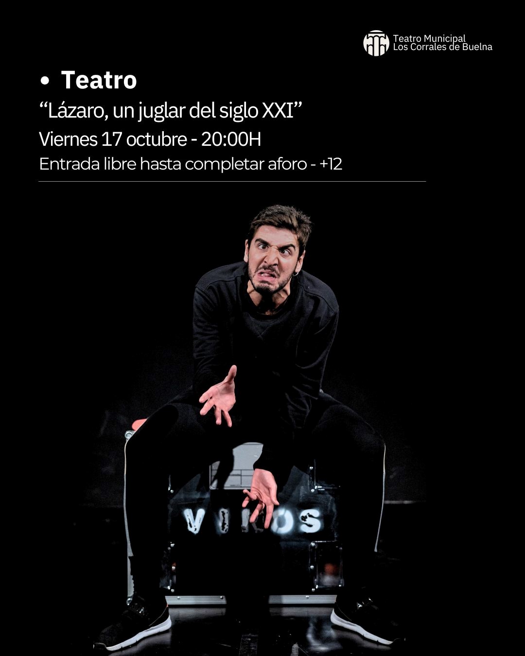 No te pierdas el próximo viernes 17 de octubre la obra de teatro ‘Lázaro, un juglar del siglo XXI’ en el Teatro Municipal de Los Corrales …