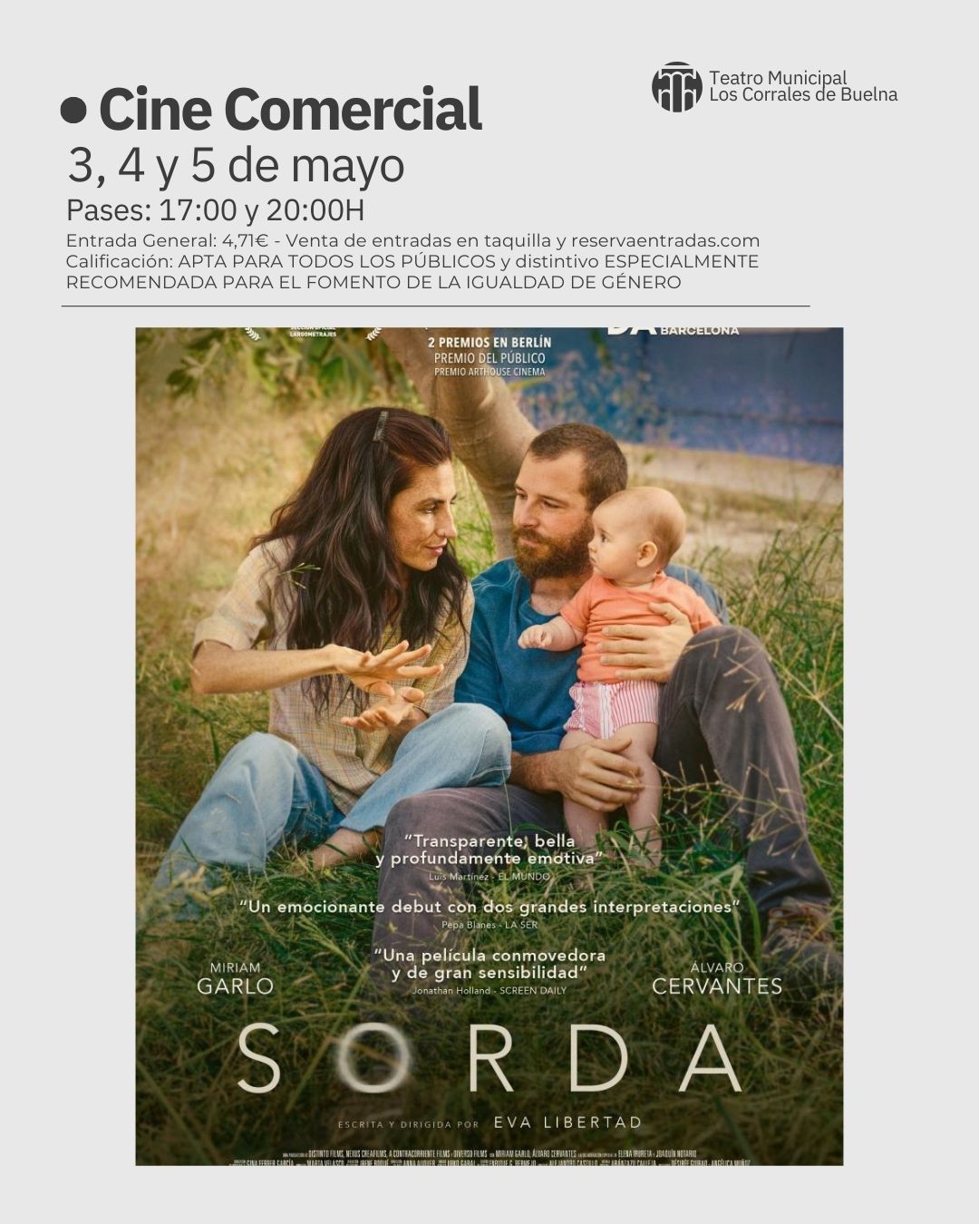 No te pierdas este finde semana la proyección de la nueva película española ‘Sorda’, en el Teatro Municipal de Los Corrales de Buelna. Días: 3, 4 y 5 de …