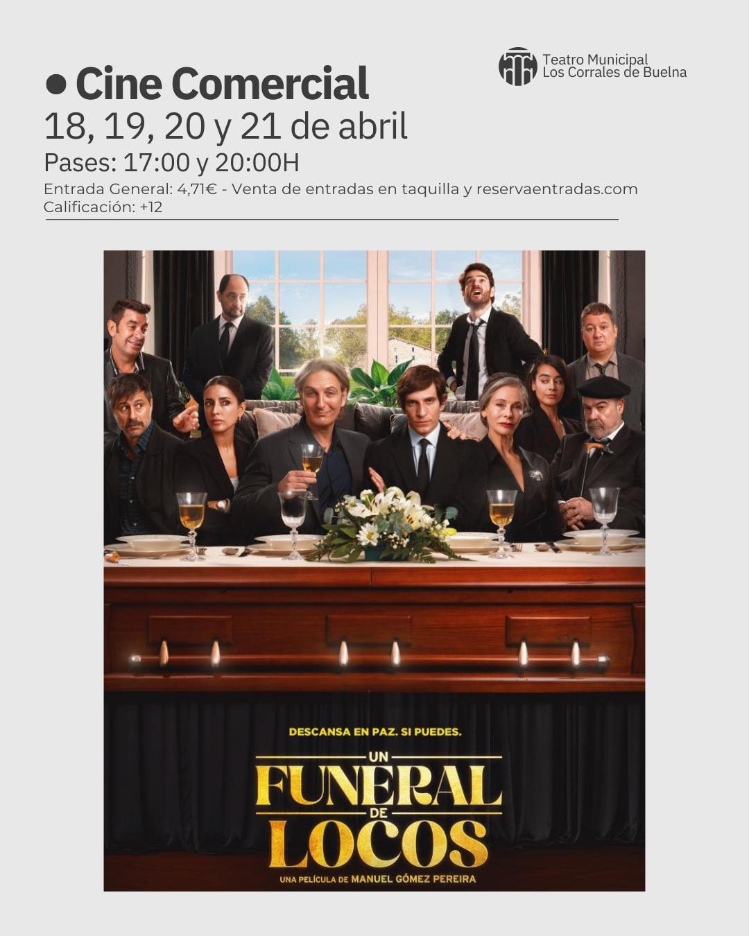 No te pierdas este finde semana la proyección de la nueva película española ‘Un funeral de locos’, en el Teatro Municipal de Los Corrales de Buelna. Días: 18, 19, …