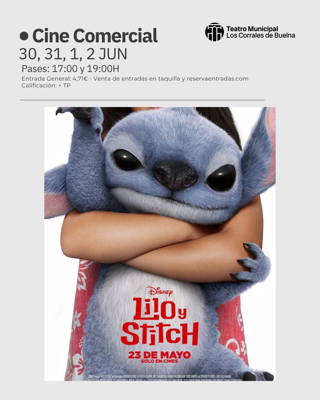No te pierdas la proyección de la película del momento ‘Lilo y Stitch’, en el Teatro Municipal de Los Corrales de Buelna. Días: 30 y 31 de mayo …